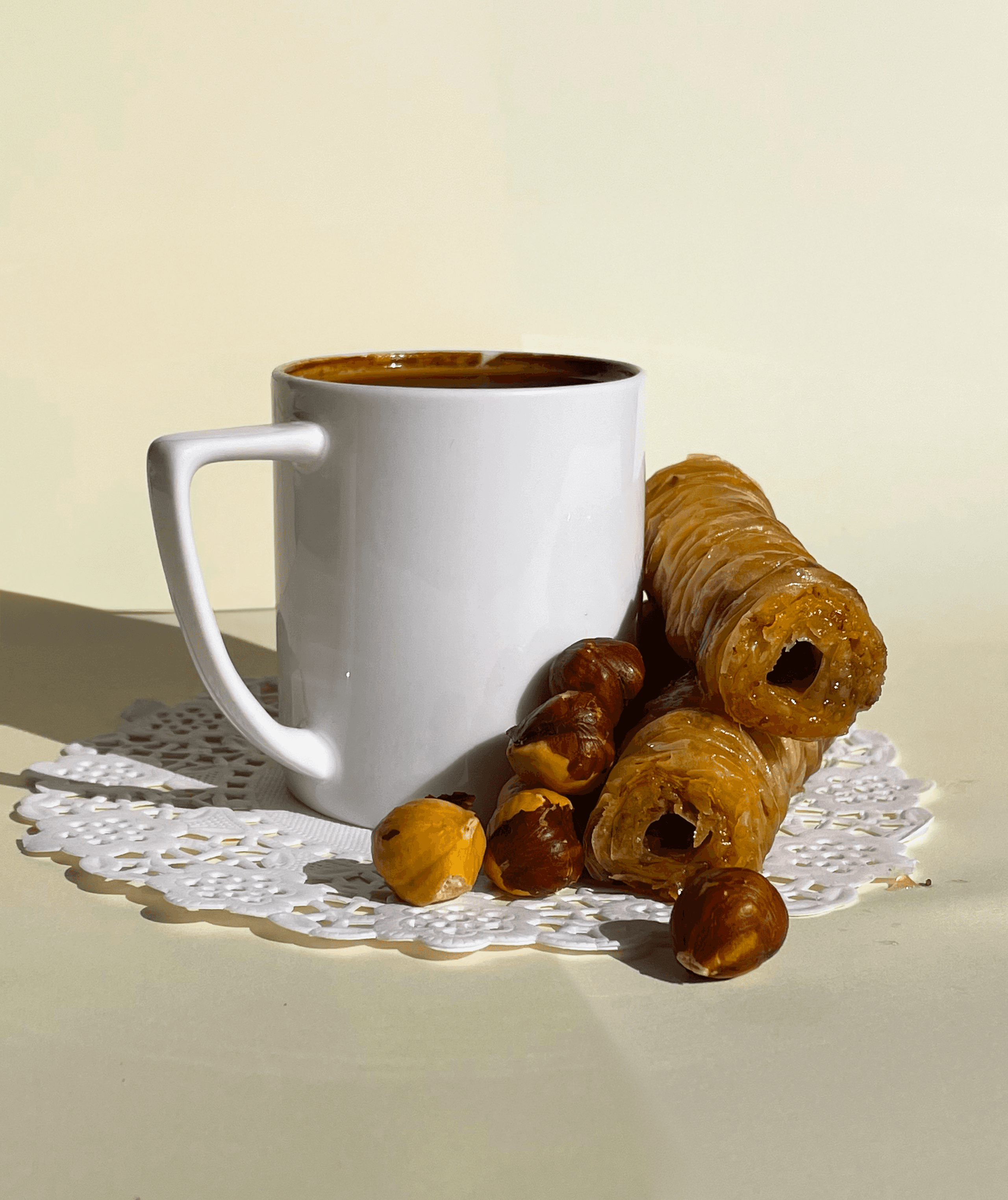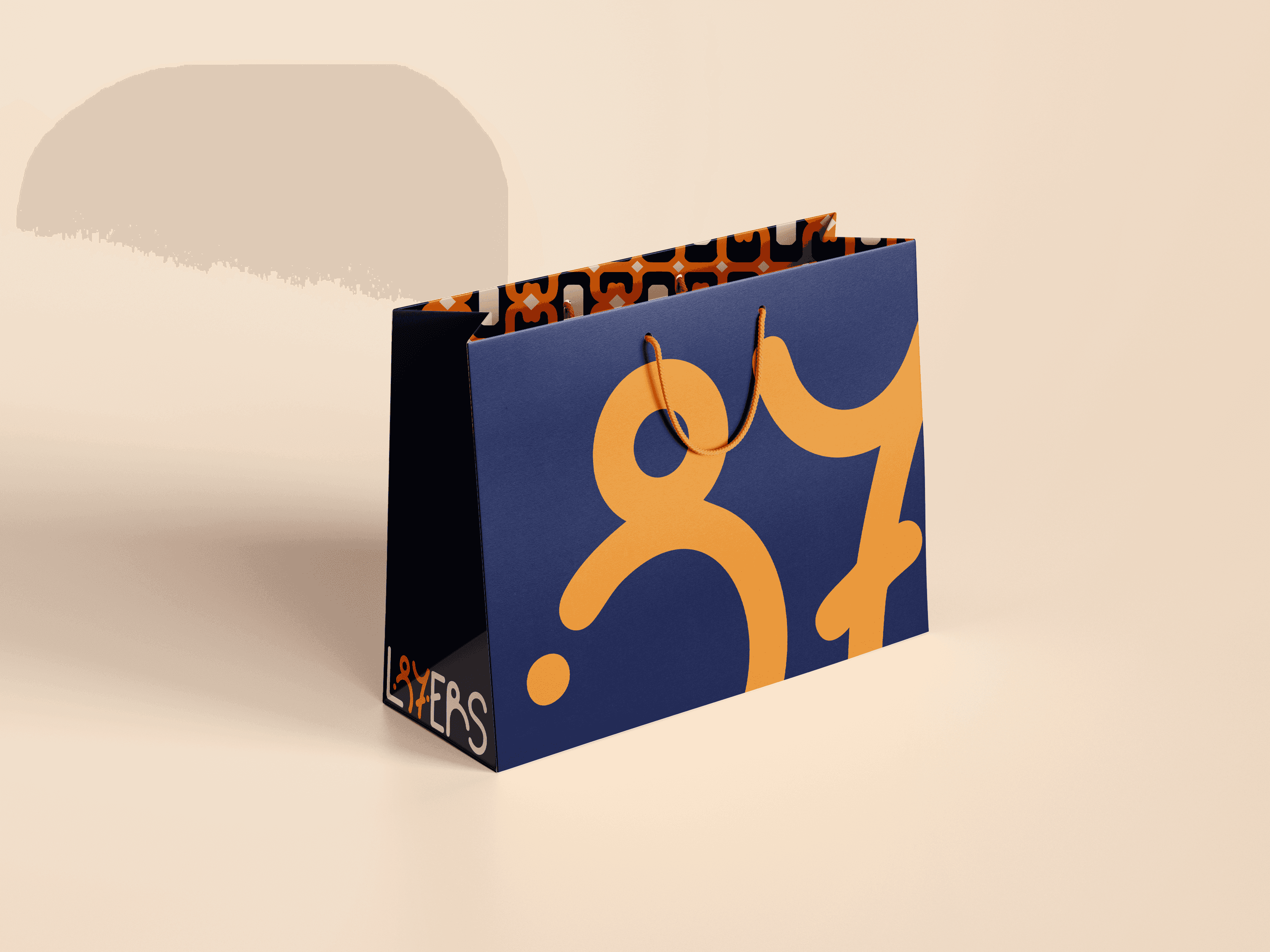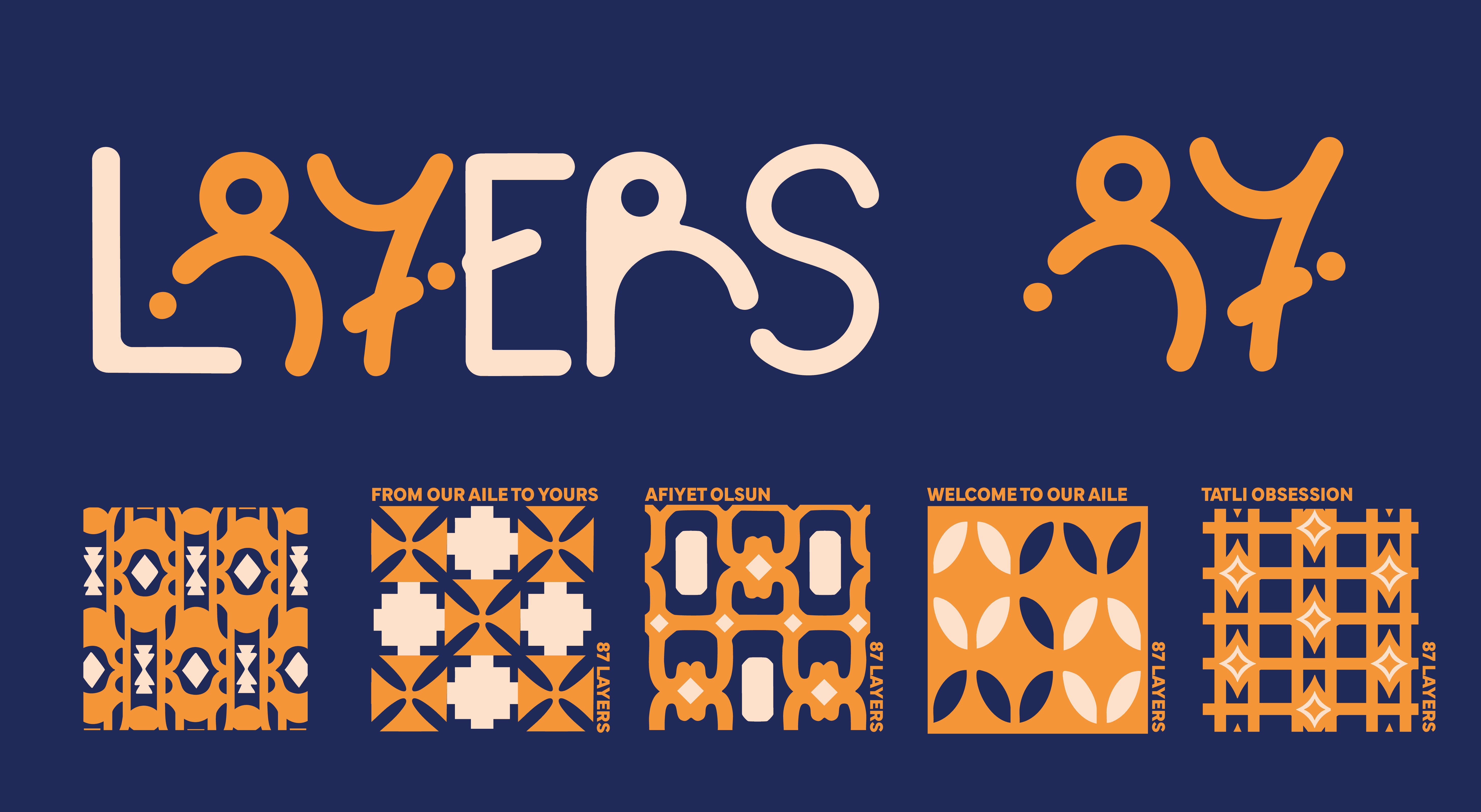 The logo merges the number 87 and ‘layers’ to symbolise baklava's layers, with curvy text inspired by its syrupy texture. The colour palette combines modernity and Turkish tradition: blue for trust, and orange and cream for the golden syrup and delicate layers.
