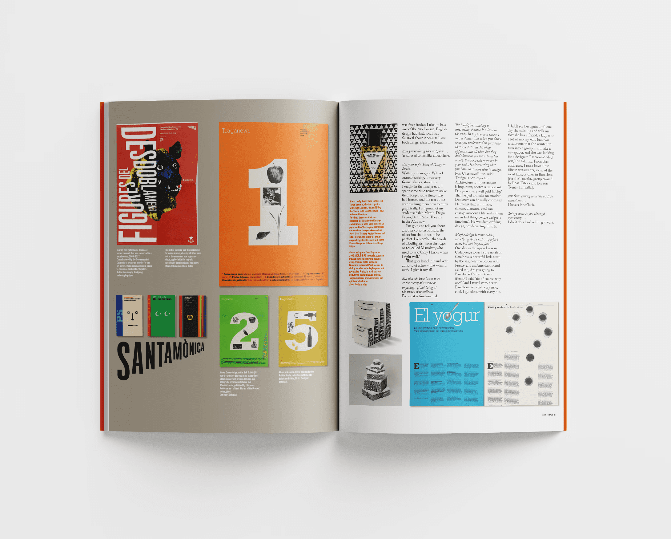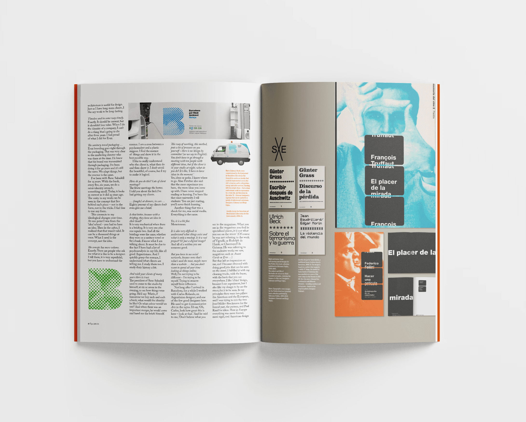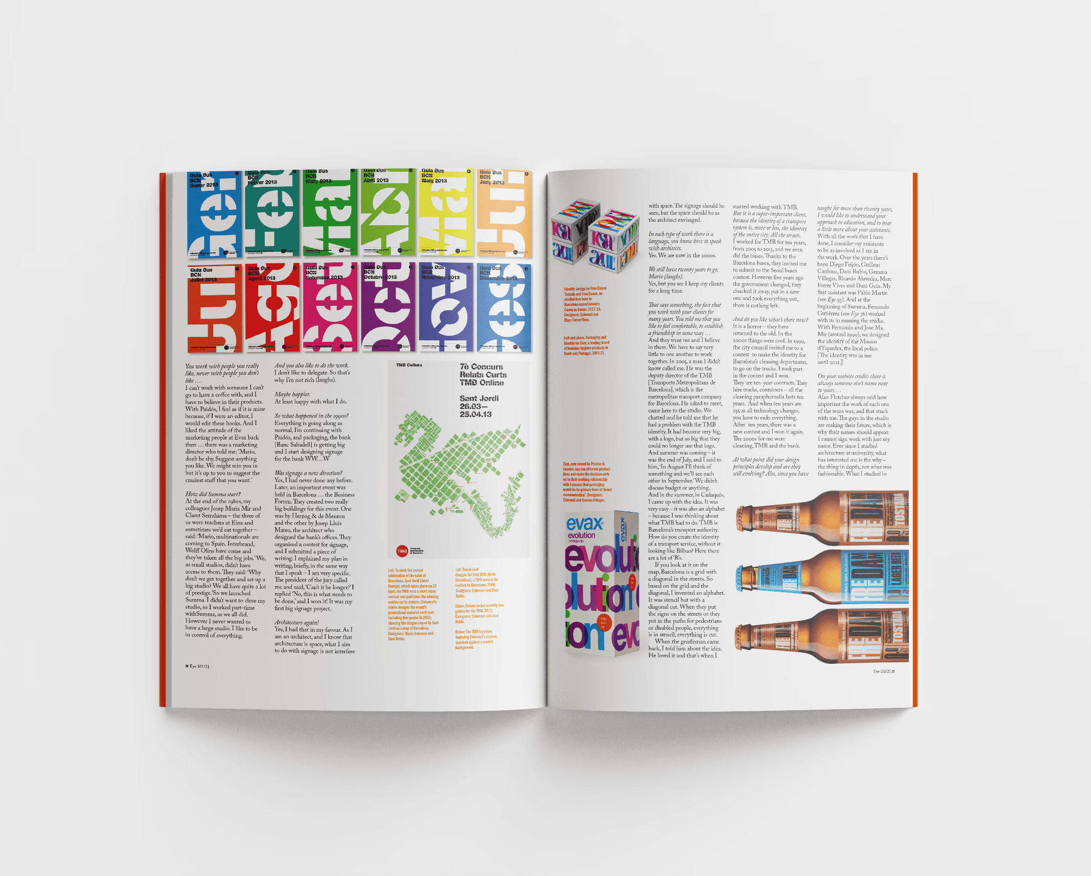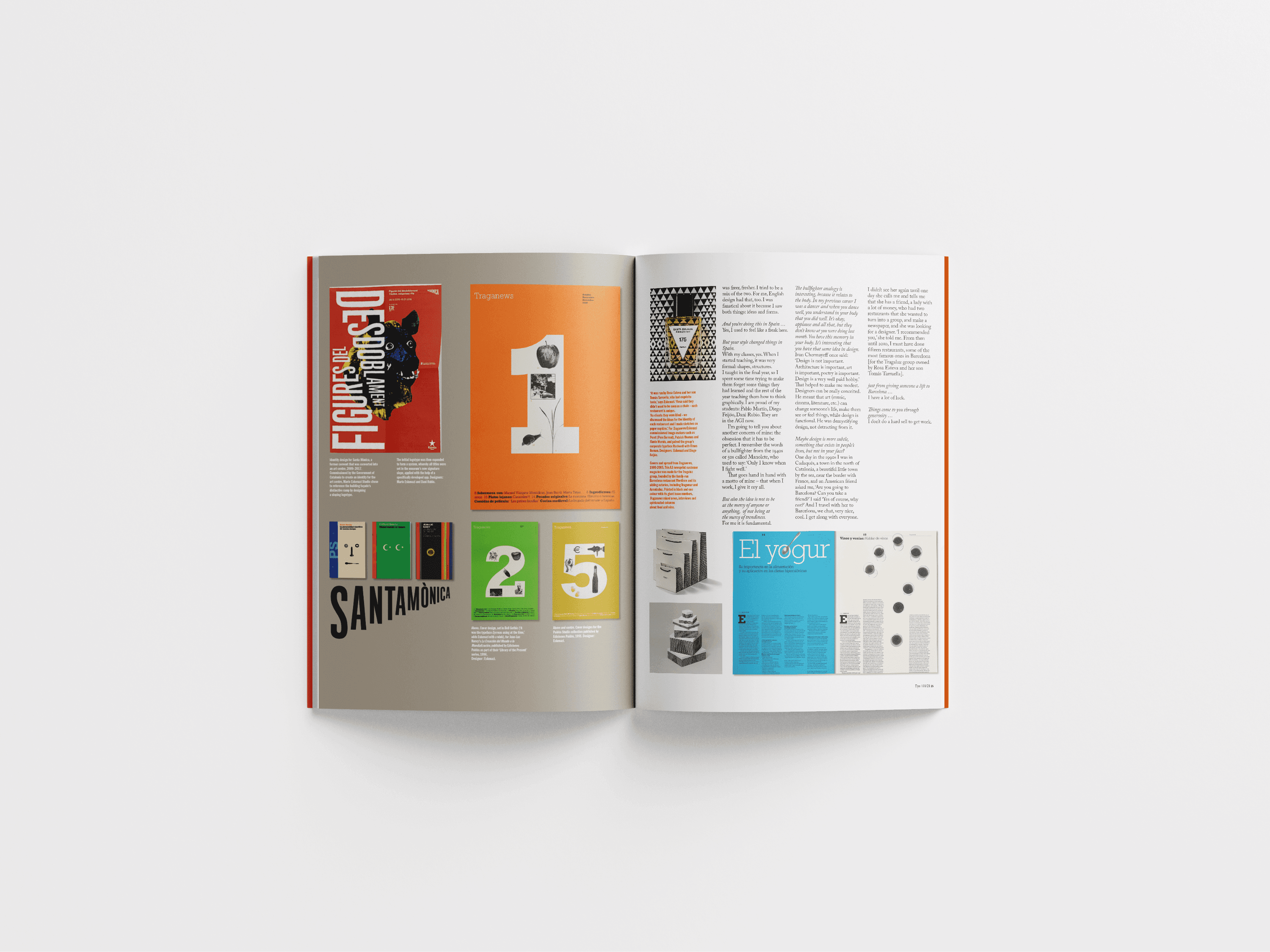 Inspired by Eye Magazine’s aesthetic, minimalism is applied across spreads, balancing text-heavy columns with imagery and negative space.