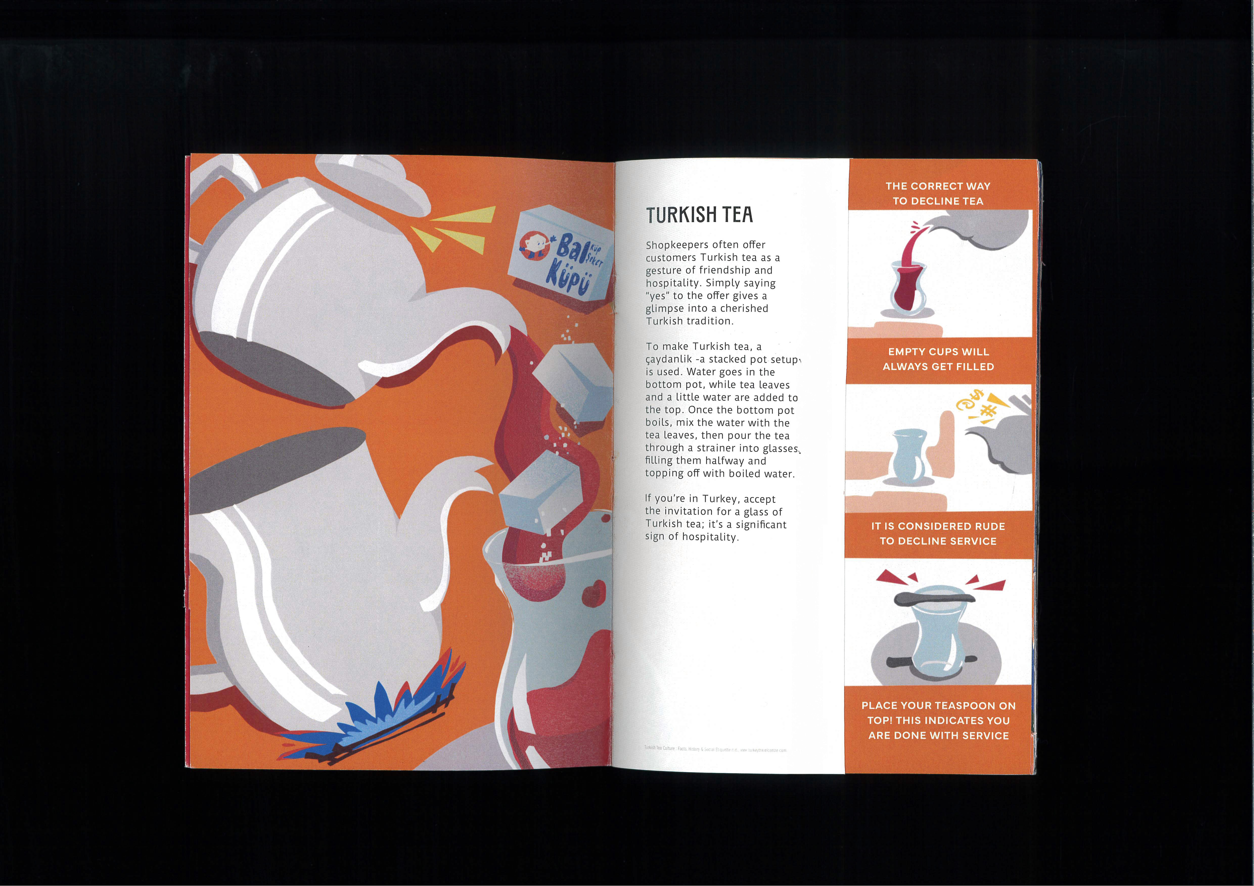 This introductory series examines aspects of Turkish culture. Full-page digital illustrations are complemented by small text cutouts, ensuring the visuals stay clear. Smaller illustrations are revealed later when the page is turned, creating a more interactive and layered experience.