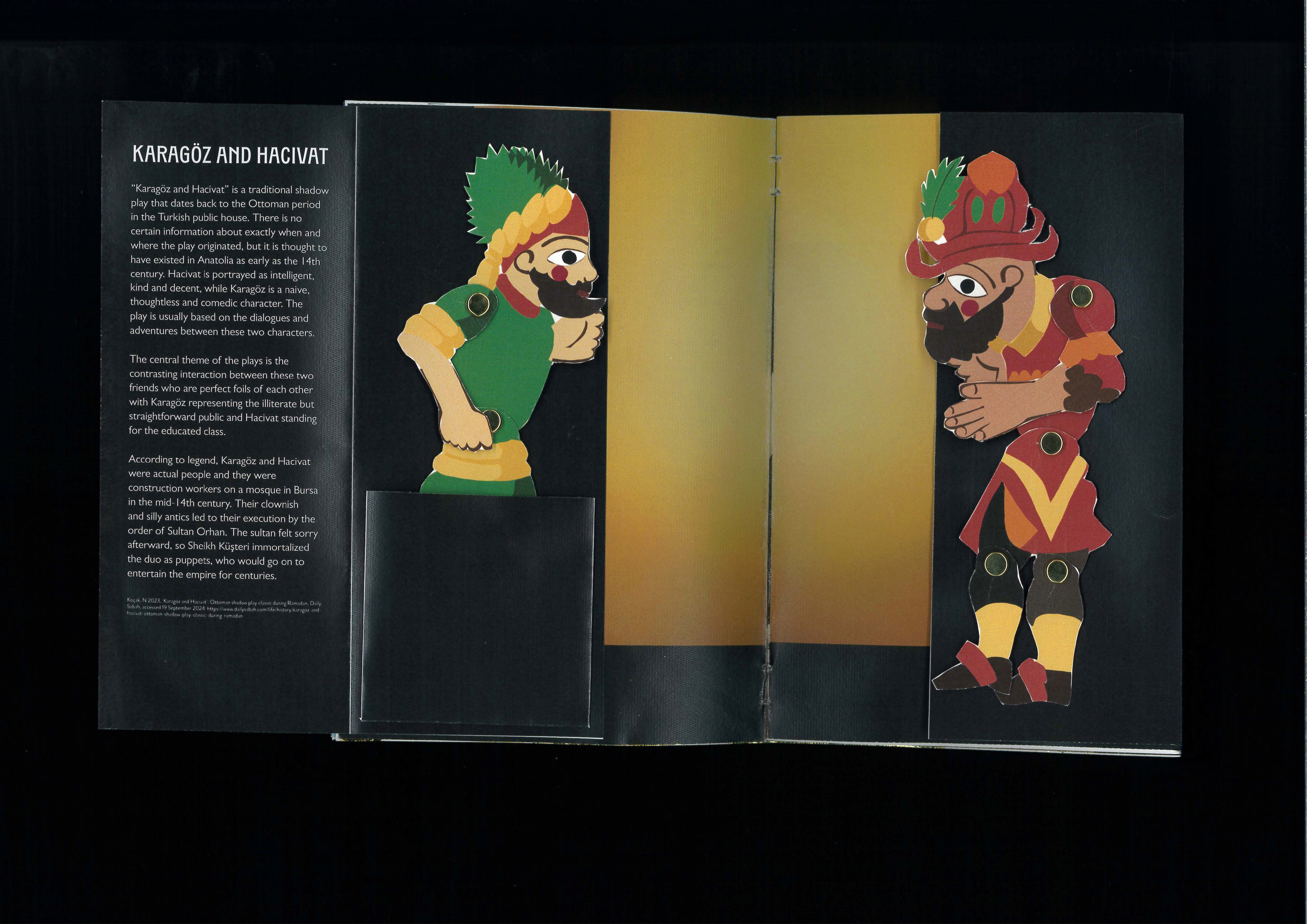 This volume brings to life key figures and stories in Turkish folklore. It enhances interactivity with features such as articulated puppets, fold-outs, pop-ups, and gold leaf details on illustrated statues. A variety of textured papers improves the physical experience and promotes tactile engagement.